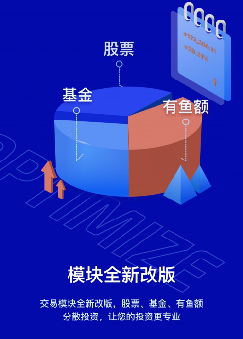 为了统一股票投资者和基金投资者不同的使用习惯,云锋有鱼的交易功能进行了全新设计。改版后的交易功能整合股票、基金和现金管理工具有鱼额三大功能。每个产品依据用户不同的使用习惯,针对相应功能的优先级差异化设置展示层级,投资者无需繁琐操作即可迅速定位目标操作。