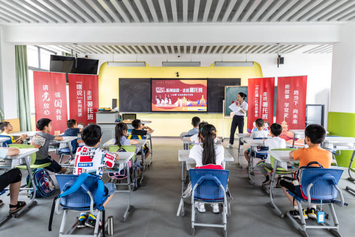 这是“曙说”红色故事汇走进暑托班的活动现场,也是当地“亲青课堂”小学生爱心暑托班迎来的开班第一天。“邀请‘90后’、‘00后’宣讲员走进暑托班,通过小朋友听得懂、听得进的小故事,让年轻人讲给年轻人听,更好地传播其中蕴含的精神能量和实践力量。”海曙团区委相关负责人说。
