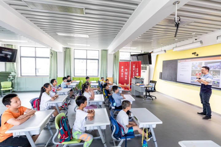 台下,小学生听得津津有味。“听叔叔姐姐分享这些故事,我有种身临其境的感受,也逐渐明白了祖国的繁荣强盛,就是靠一代代人努力拼出来的。”来上暑托班的三年级学生洪颢瑜说。