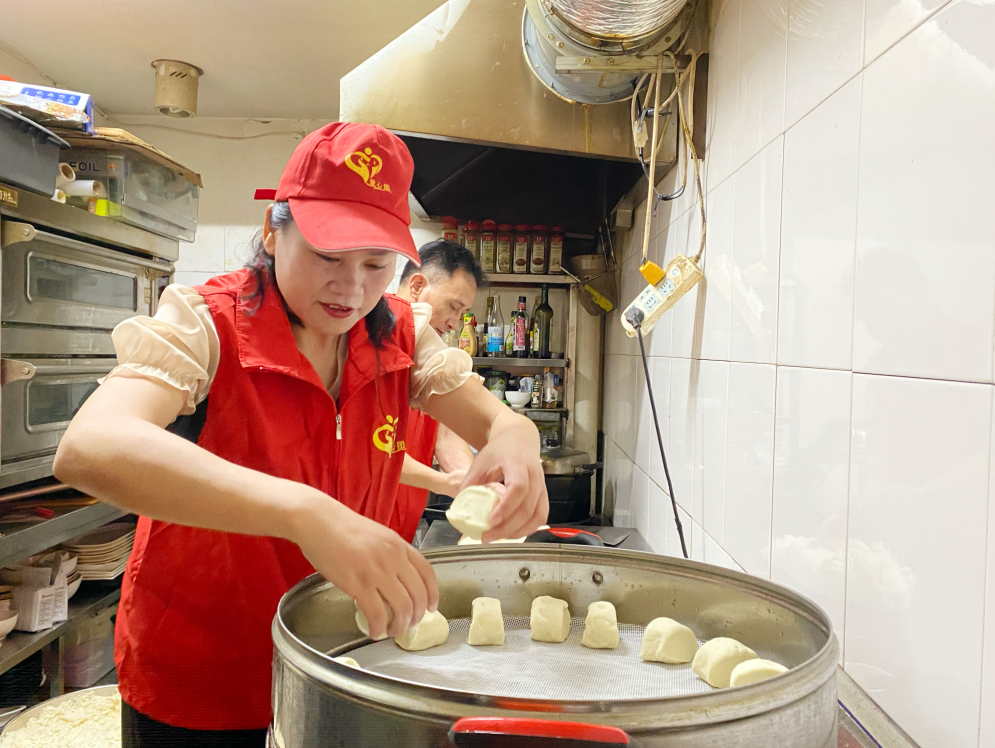 据玉兰社区党委书记邬晓红介绍,黄小琴是社区的入党积极分子,昨天在来避灾点做志愿服务,她看到有的人吃的比较简单,想到自己就会做馒头,想给避灾点的群众免费送早餐。这一想法刚好与他们不谋而合。