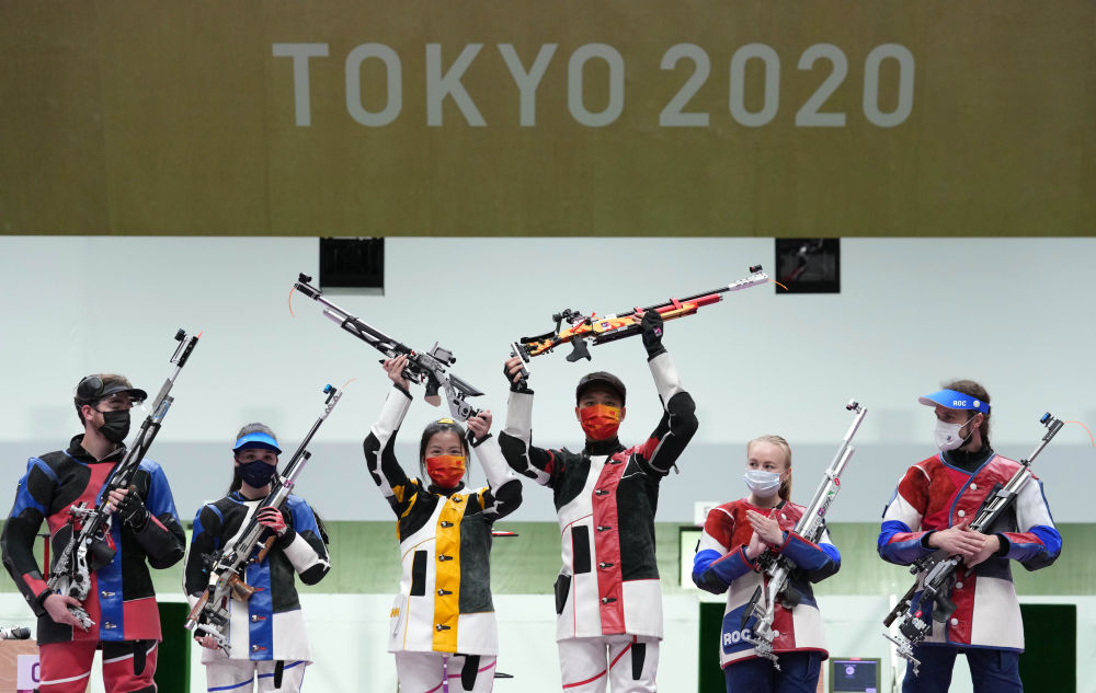 在今天的气步枪混合团体赛决赛中,杨倩/杨皓然组成的“杨杨组合”与美国的塔克/科泽尼斯基组合狭路相逢,他们在预赛阶段分列第一和第二位。