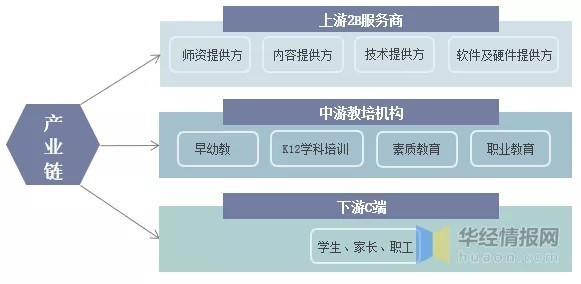 另外,随着2B企业培训业务兴起,部分机构从原有2C的职业培训业务向B端延展,或直接切入B端企业培训业务,提供工具、内容和服务。下游主体是C端学生(消费者)和家长(支付方),企业培训业务下游通过企业采购决策链路传递到C端。