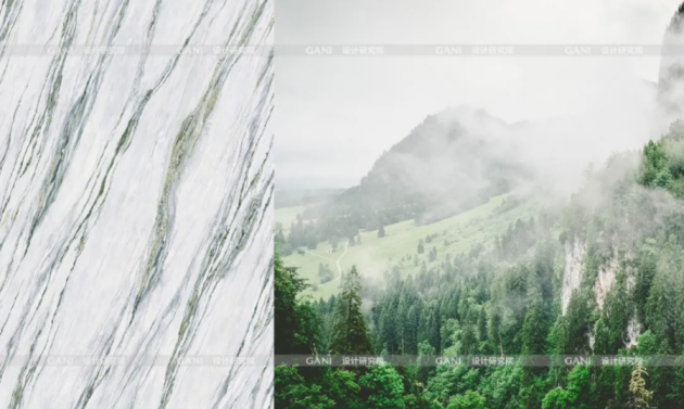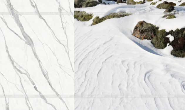 洁白纯净的基底上灰白相间的纹理自然延伸、相互交织,给人超强的视觉冲击力。