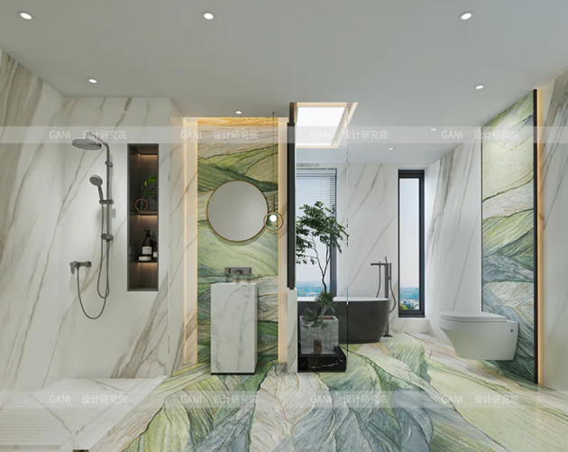 普通住宅净高是2米8-3米之间,做完吊顶后一般是2米7以内,而简一900x2700mm系列刚好可以满足一片到顶的贴心规格,如特级雪花白系列、青松耸翠系列和绿野仙踪系列,只需一片瓷砖,就能实现从地面直通吊顶,全程无需拼接,不仅有效降低了安装成本,拒绝施工浪费,又充分展现了家居空间恢弘大气的高格调。