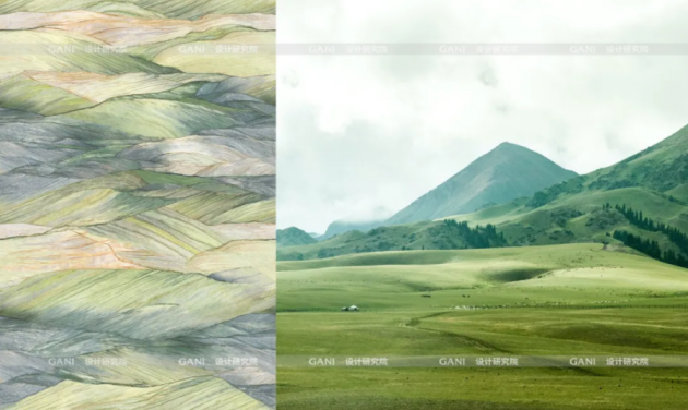 灰色基底上满是不规则的细腻纹理、点线交替,空间层次感超强,把大气豪迈展现得淋漓尽致。