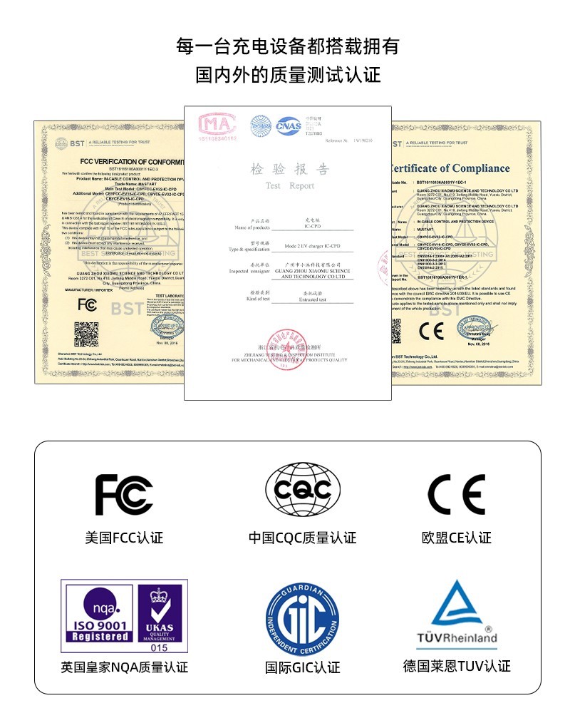 造型美观是MUSTART充电桩的一大特色,机身流线型设计,美观。MUSTART充电桩产品已获得13项权威的国际认证,包括美国FCC认证、中国CQC质量认证、欧盟CE认证、英国皇家NQA质量认证、国际GIC认证、德国莱恩TUV认证等。