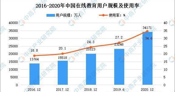 截至2020年12月,我国在线教育用户规模达3.42亿,较2020年3月减少8125万,占网民整体的34.6%;手机在线教育用户规模达3.41亿,较2020年3月减少7950万,占手机网民的34.6%。