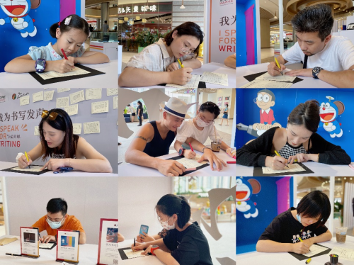 为了将爱心更好的传递,也为了丰富贯彻书写的意义,毕加索钢笔还准备了“我为书写发声”爱心卡片,现场消费者在在卡片上写下一句祝福或鼓励的话并签名,我们会将爱心卡片放入钢笔包装中一同捐赠到贫困地区,送到孩子们手中,让温情隔着山海心意相通。