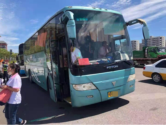 20分钟左右,被举报的大客车出现在执法人员视野。交通执法人员立即对嫌疑车辆发出停车受检信号,车辆停靠后,执法人员上前检查,核对车辆相关证件,经核实:被检大客车为56座的非营运客车,每车内均载有客源(学生)40人。