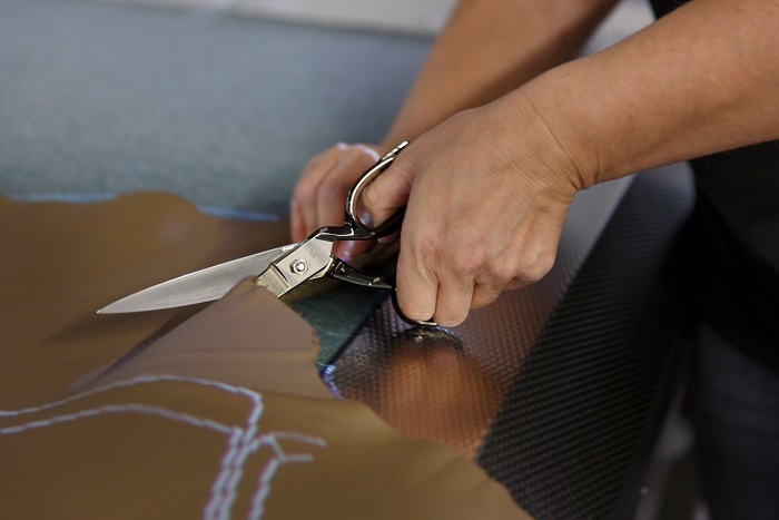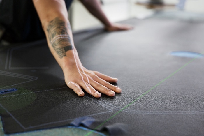 Rolf Benz技师会在特殊灯光下检查皮革,并实行数字化皮革切割。用切割刀调整尺寸,然后用特殊的熨斗熨烫皮革背面,以便将皮革片精确地加工到沙发上。
