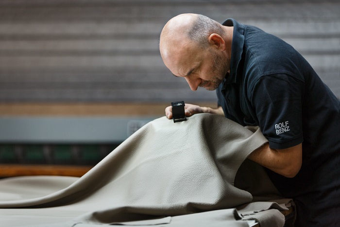 在Rolf Benz工厂,每张生皮百分之百接受质量把关,Rolf Benz技师将每张生皮按质量分为A1-A4四个等级并提供「条形码」,生皮以数字化方式存储在系统中,以供客户订购。