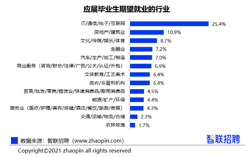 近年来,房产经纪人的职业优势和前景逐渐得到认可,职业吸引力逐步增强,越来越多的人选择加入房产经纪行业。智联招聘数据显示,房地产行业已成为应届毕业生期望就业行业的top2,仅次于互联网行业。
