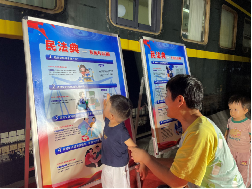 宣传展板的内容包括人格权利、婚姻家事、继承权利、物业权利等与市民生活息息相关的法律法规及典型案例。在观展的人群里,有带着小朋友的家长们,有正值青春年华的青年们,白鹤司法所通过这样具有针对性和观赏性的普法载体,切实让民法典走到百姓身边、走近百姓心里。