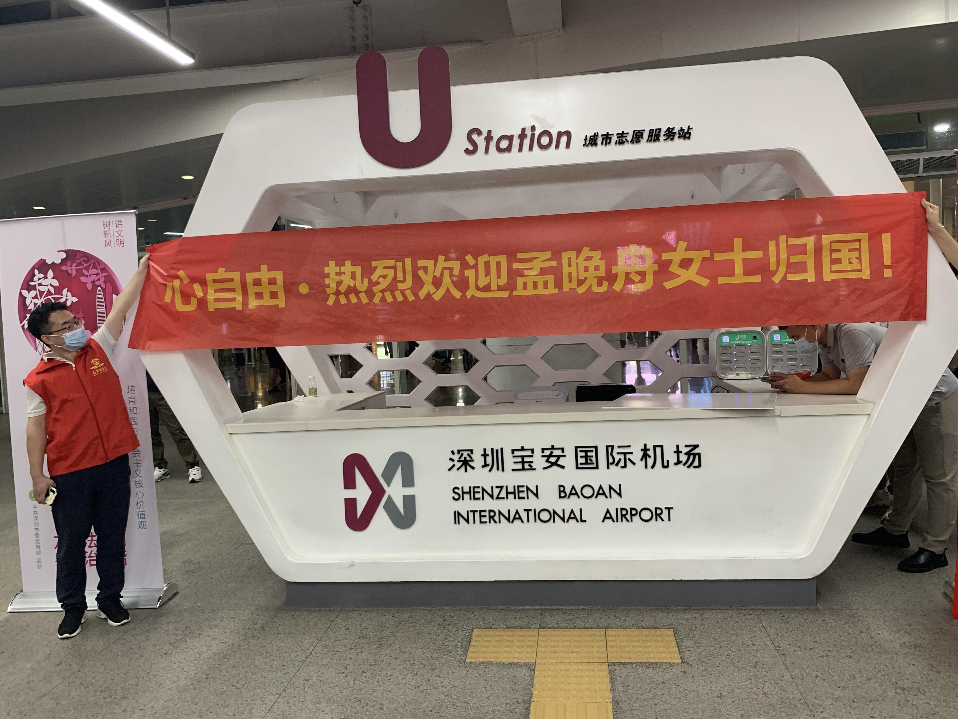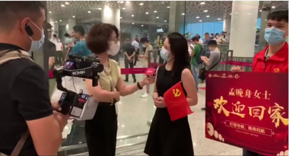 9 月 25 日,孟晚舟获释,并将于北京时间21:55分到达广东深圳。欣闻此消息,心自由教育集团(深圳)的青年志愿者们自发组织,购买鲜花并制作了欢迎牌前往机场迎接孟晚舟的归国!在宝安国际机场 T3 航站楼国际到达大厅,聚集了大量媒体和自发前来欢迎孟晚舟女士回国的人群,心自由教育集团(深圳)的青年志愿者们和广大爱国市民一起唱起了国歌和《歌唱祖国》,共同表达爱国之情,并能深深地感同身受孟晚舟女士这一千多天来的辛苦和委屈,我们也在此刻更加地感受到祖国的强大以及祖国的强大带给我们所有人的尊严!