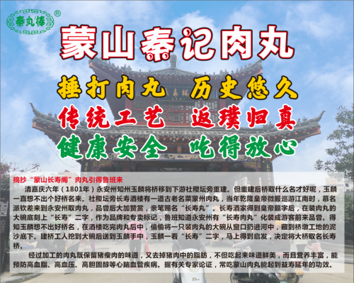 蒙山秦记甘泉水棰打肉丸原料选取蒙山本土猪肉及山泉水等,采用传统捶打方式,不加任何添加剂,肉丸弹脆爽口,鲜甜甘香,汤水鲜、香、美。此前,秦记甘泉水棰打肉丸在2017年被评为“梧州市优秀文旅商品”,2018年被列为蒙山县非物质文化遗产项目。今年,更是在在由自治区文化和旅游厅、自治区商务厅、南宁市人民政府主办,广西非物质文化遗产保护中心、南宁市青秀区人民政府承办,广西旅发文化传媒集团有限公司、广西烹饪餐饮行业协会协办的“广西有味·百县千菜”——广西非遗特色美食大赛活动“广西有味·百县千菜”2021广西非遗特色美食大赛上,还荣获了“特色菜金奖”的称号。