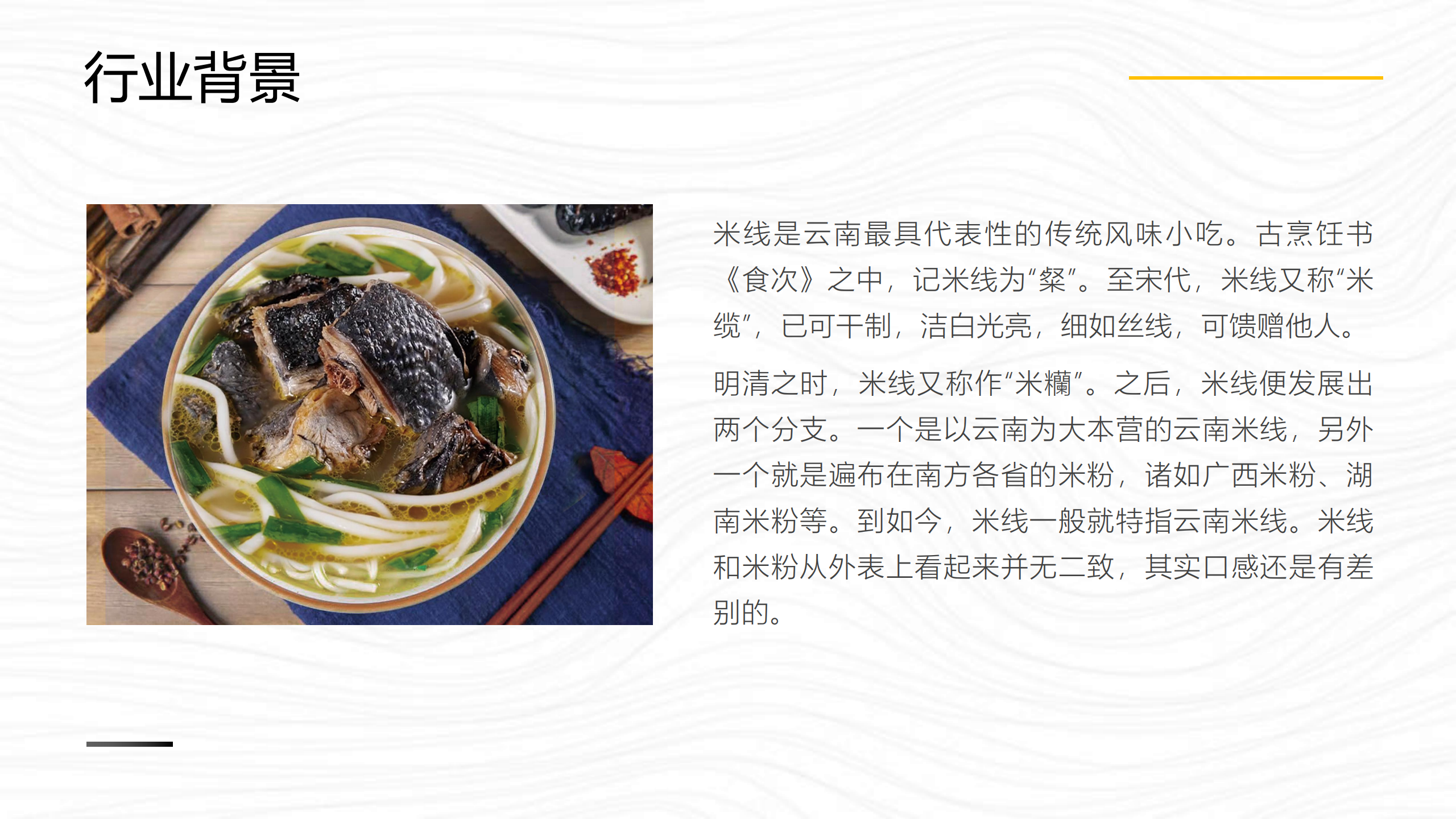 米非线主打云南风情品牌IP,这是继云南火锅之后,又一云南新菜品,与千篇一律的品类相比,鲜明的差异性,有利于在餐饮市场上竞争不同的餐饮赛道。