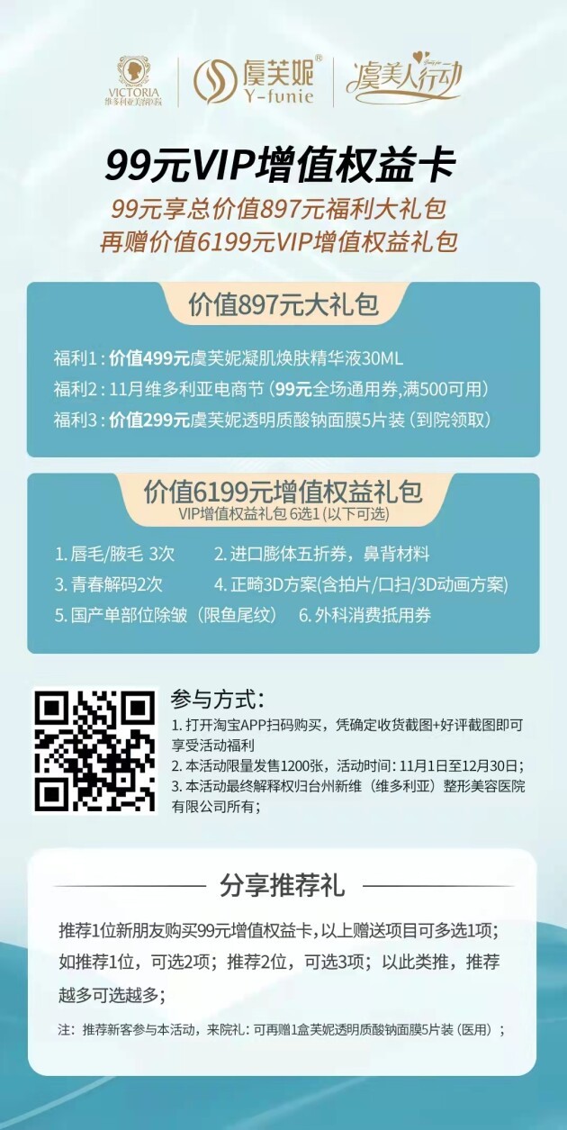 且这次虞美人活动联合台州维多利亚,再额外赠送价值6199元的vip增值权益礼包~将更多的活动优惠感恩回馈给喜欢虞芙妮品牌的广大粉丝们!