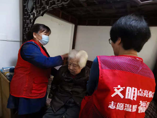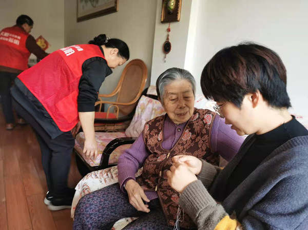 这边刚忙好,服务队的另一个成员李阿姨也接到了求助电话,原来家住265号106室的刘淑兰婆婆又遇上“大难题”了,她听天气预报说下周开始寒潮要来,气温会骤降到零下,就想把家里的厚毛线裤收拾出来,但是发现有些地方脱线了,想缝补一下。志愿者李阿姨立马赶到了刘婆婆家,精通各种针线活的李阿姨帮老人把针眼穿进,一针一针把毛线裤脱落的地方缝上。忙完针线活后,李阿姨又帮刘婆婆把过冬要穿的衣服都整理出来放在一个柜子里,便于刘婆婆找起来顺当。刘婆婆今年94岁了,患有心脏病,腿脚也不太利索,虽住在一楼,但平时却很少出门,她的两个儿子远在湖北,平时家里就一个人独居,连个说话的人都没有。服务队得知这个情况后,就将刘婆婆纳入了服务对象,隔三差五派队员过去陪老人唠唠家常……