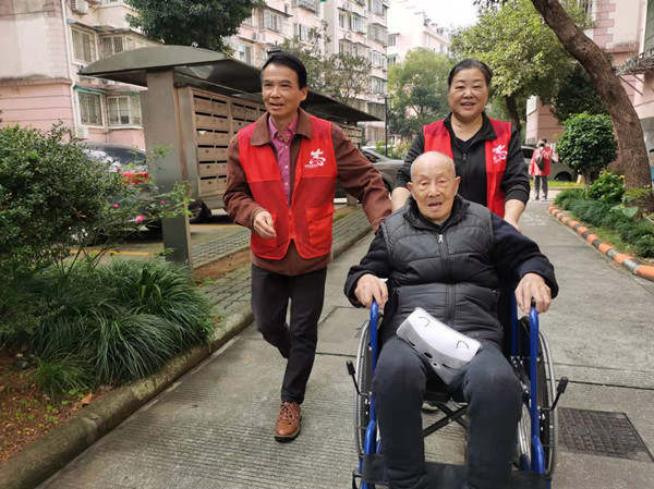 11月20日上午,记者前往采访,刚和社区里这支志愿服务队的召集人罗培毅师傅对接上,没聊几句,罗师傅的手机就响个不停,来电人是家住130号105室的百岁寿星陈阿昌。原来他看到窗外天气晴朗,想到公园里去晒晒太阳,由于腿脚不便没法下楼,子女又都不在身边,就想到了联系罗师傅。听明情况后,罗师傅和华阿姨连忙赶到陈阿昌家中,细心地将老人扶下楼梯,坐上事先准备好的轮椅:“这些志愿者比自己的亲人还要亲,5年多来我随叫孩子们就随到,真是一群热心人!”在公园里,陈阿爸在志愿者的陪护下,沐浴着寒冬的暖阳,满怀感激,心里乐开了花。