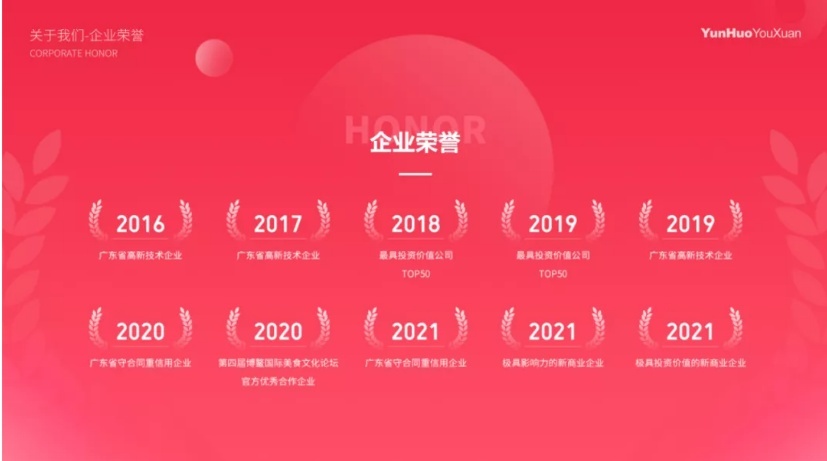 连续两年评为“最具投资价值公司”TOP50,获广东省网商协会颁发的“极具影响力的新商业企业奖”、“极具投资价值的新商业企业奖”