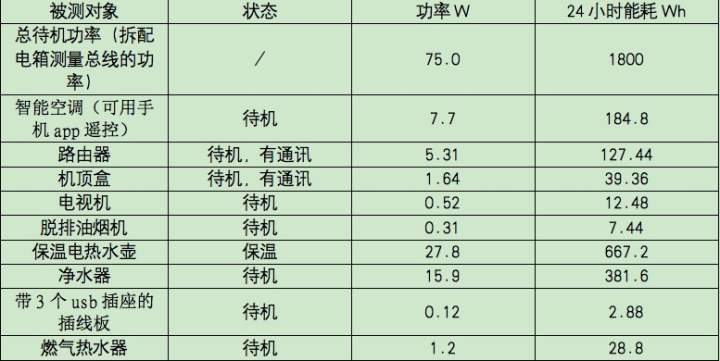 2.1总待机功率(从配电箱测量总线的功率)