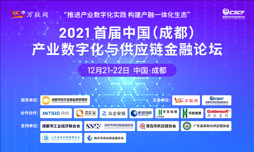为此, 2021年12月21日~22日,在成都市地方金融监督管理局指导之下,万联网联合成都市供应链金融协会,在西部供应链金融发展的热土成都,举办此次盛会,邀请300+生态圈企业精英共探未来,共商合作。