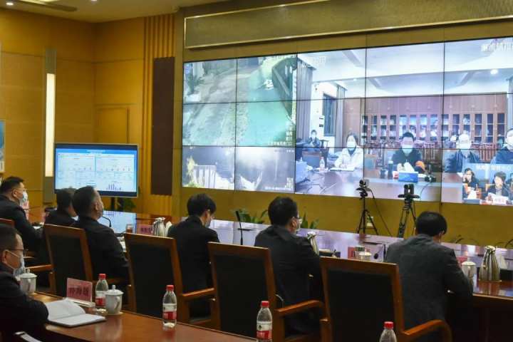 会议以视频形式召开,各镇(街道)和石化区设分会场。