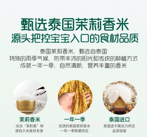 在原料上,英氏泰国茉莉香米米饼采用泰国进口茉莉香米为原料,这种米一年只产一季,即便是农业越发现代化的时代,泰国人也没有给农作物喷洒农药和化肥的习惯,确保所产的大米纯天然无污染,每一粒米都是原生态。纯天然的种植方式和原始的稻种使得泰国大米的营养更为丰富,也让英氏泰国香米米饼的品质更上一层楼。