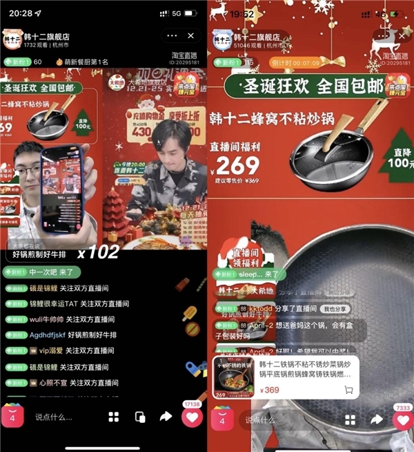 好锅与优质食材能相得益彰,互相成就。12月22日,韩十二直播连麦携手大希地,烹饪中国好年味。作为全网牛排销量第一的大希地,无论是线上旗舰店还是线下盒马商超、各大门店,其产品深得消费者喜爱。当晚两大国货品牌首次直播连麦吸引了许多“厨房玩家”、美食爱好者们的眼球,双方直播间里人气空前高涨,“好锅煎制好牛排”的口号不断刷新屏幕,多款福利产品被粉丝秒空。抽奖环节,两位帅气主播开启成语接龙游戏,吸引了众多新粉直接加入韩十二战队,成为主播强大的“后援团”。当晚,韩十二直播间超过50000人参与互动,众多爱美食,爱烹饪的厨房达人齐聚,共同参与了这场“舌尖美食与品质锅具”的温暖邂逅。