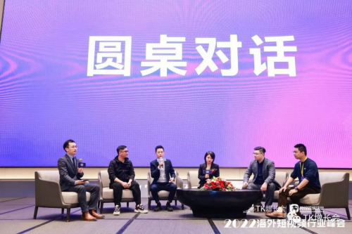 红制作创始人刘畅、招鲤科技创始人张天佳、TK红人代表Laytain、奇光MCN总经理赵正海、短视频疯人院李社长,在TK增长会创始人嘉伟的主持下围绕“2022年TikTok行业新趋势与机遇”在这一话题,展开圆桌对话。