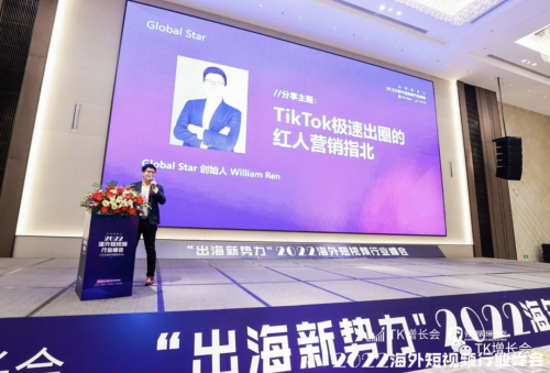 GlobalStar传媒创始人William Ren在峰会分享时表示,TikTok红人是出海品牌快速出圈必做的功课。
