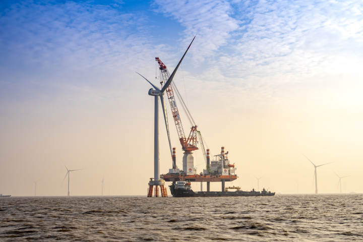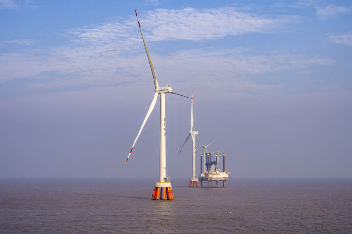 该项目从2021年11月2日首台风机安装完成到全部风机安装完毕,仅用时51天,将41台风机全部矗立于东海之上,进入了全力冲刺风机并网和全投发电阶段。