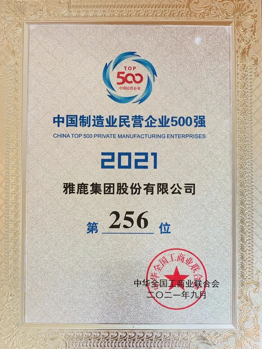9月25日上午,由中华全国工商业联合会、湖南省人民政府共同举办的2021中国民营企业500强峰会在长沙开幕。雅鹿集团作为太仓唯一一家入围500强的企业在2021中国制造业企业500强中位列第256位,在2021年中国民营企业500强中位列第456位。