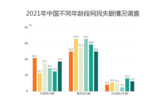 对于中老年人来说,身体机能的衰退是引起失眠的必然结果,因此翻来覆去睡不着是非常痛苦的事情。同时对于80、90后的年轻人来说,由于平时的工作、生活、感情等方面压力大,也很容出现睡眠质量差、失眠等问题,而且越来越泛滥。睡眠烦躁、睡眠苦涩是年轻一代人目前面临的主要问题。由此可见,不管是主动睡眠,还是被动睡眠,睡眠问题已经成为涵盖老人、中年、少年的普遍社会问题。