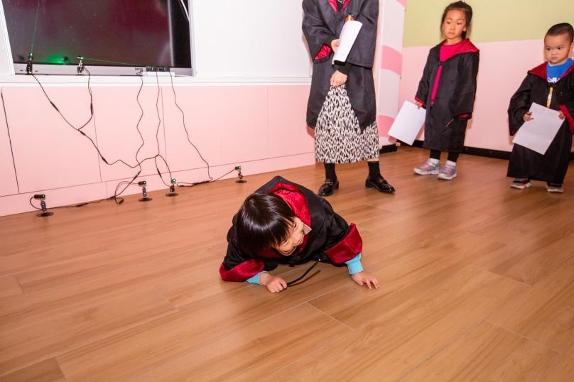 这里是三大黑魔法之最,也是最厉害的“黑魔法”之一!魔咒射线丝丝索索地贯通着,挡住了前方。来到这里,对堡贝们来说,无疑是巨大的挑战,来看看大家的表现吧!首先,堡贝们需要保持冷静,小心翼翼地穿越魔咒射线到达对岸。如果中途触碰到了射线,就算闯关失败了哦~
