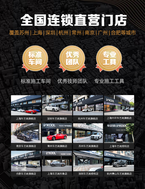 2003年至今,陆续在上海、南京、广州、深圳、杭州、常州、合肥等地开设了三十余家汽车贴膜连锁施工门店,并与永达集团等与众多4s集团达成了深度战略合作,为15万+车主提供满意的汽车贴膜服务。