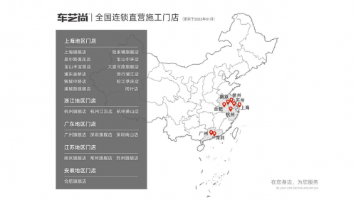 2022年2月,车艺尚杭州加盟店签约仪式暨全国招商加盟启动仪式在上海成功举办。车艺尚核心创始人成员、全国连锁门店事业部负责人、杭州加盟店代表等出席了会议。