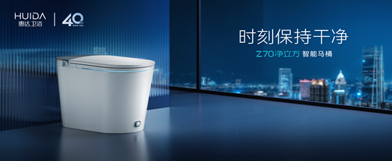 2021年,惠达卫浴更自主研发了行业高端旗舰卫浴新品——Z70净立方智能坐便器,广告语“时刻保持干净”。该产品融合了多项自主研发技术,具有感应翻圈/脚触翻盖/翻圈冲水功能,真正解放双手;自主研发的50mm管道,以及零水压、秒冲技术、无棱内壁技术,使坐便器无惧水压,排污更顺畅;360°杀菌技术、低频脉冲清洗、超级烘干等更懂消费者,让智能坐便器时刻保持干净,带来美观与实用的双重享受。