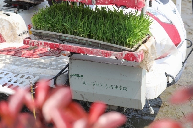 据了解,这台无人插秧机应用了北斗卫星定位系统,农户只需要在手机App上提前设置好秧田的出发点和转弯点,无人插秧机就会自动规划插秧路径、调头和转弯,保障田头作业安全,真正实现让农民“洗脚上田”。