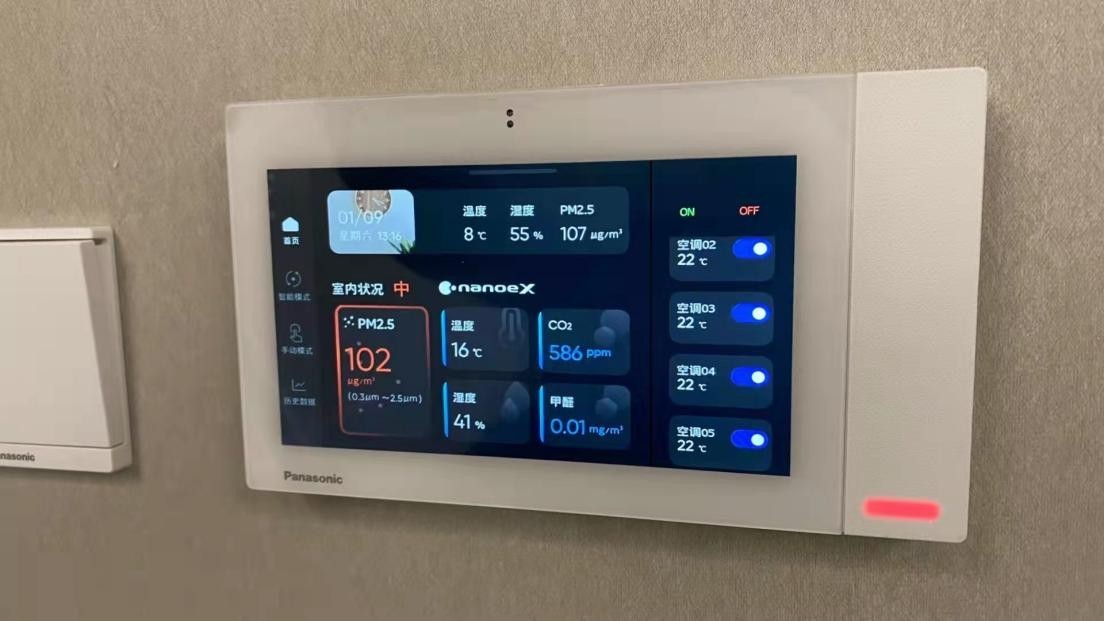 它包含空调模块、新风模块和调湿模块,冬夏室内温度不适就开启空调模块,通过3D面板广角送风,不论冬夏,屋内的每个角落都能拥有适宜的温度。而且这个模块还搭载了松下特有的黑科技——高浓度纳诺怡X技术,能够抑菌除味,带来健康环境。秋冬面对室外的雾霾,紧闭门窗难免室内不通风,这时候就可以打开新风模块,为室内源源不断地输入新鲜空气。调湿模块用处也很大,不仅能除湿,而且还能加湿,让多雨的夏季不再粘腻,寒冷的冬天不再干燥。