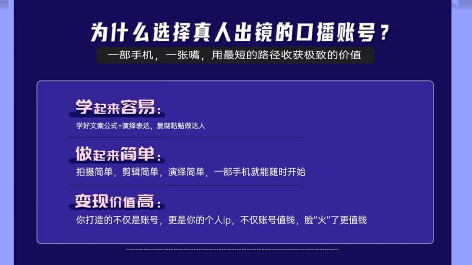 那么适合普通人做的直播类型是什么呢?我建议大家做名嘴口播。这种名嘴口播看起来就是一个人,一部手机,写好的文案,将他念出来,每一个视频长度不需要太长,30至50秒即可,经过简单的剪辑便可投放到抖音平台上。