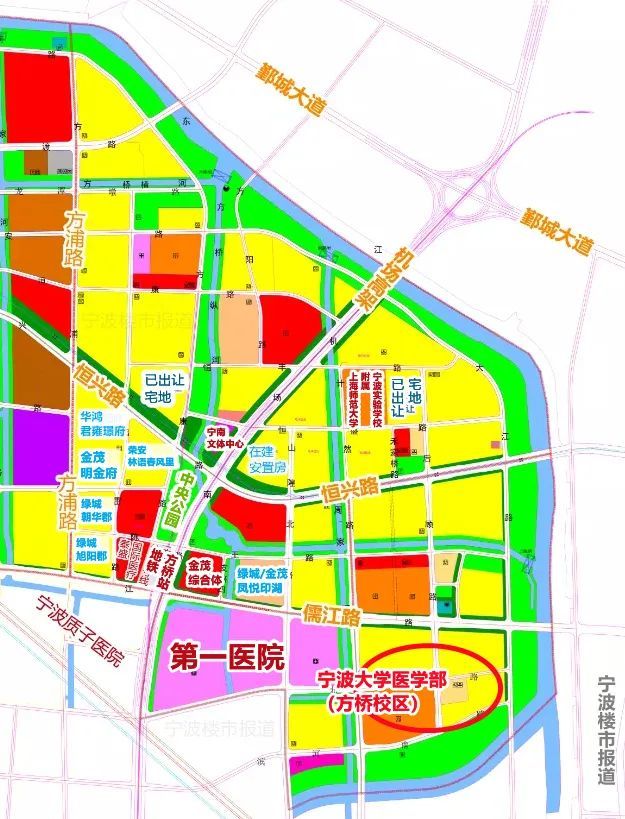 宁波大学医学部(方桥校区)位置示意,据资规部门用地规划图标绘,仅供参考,最终以建设为准。