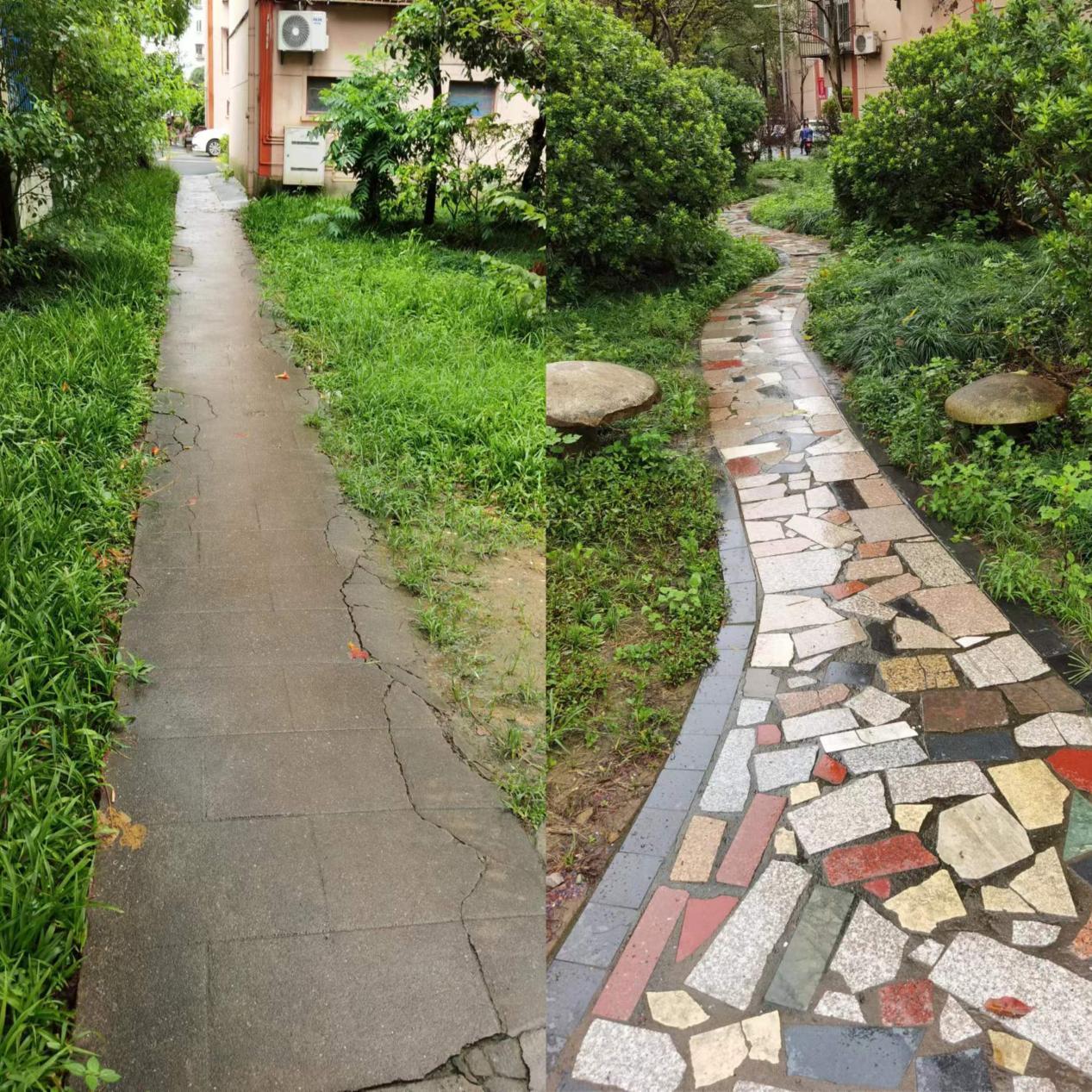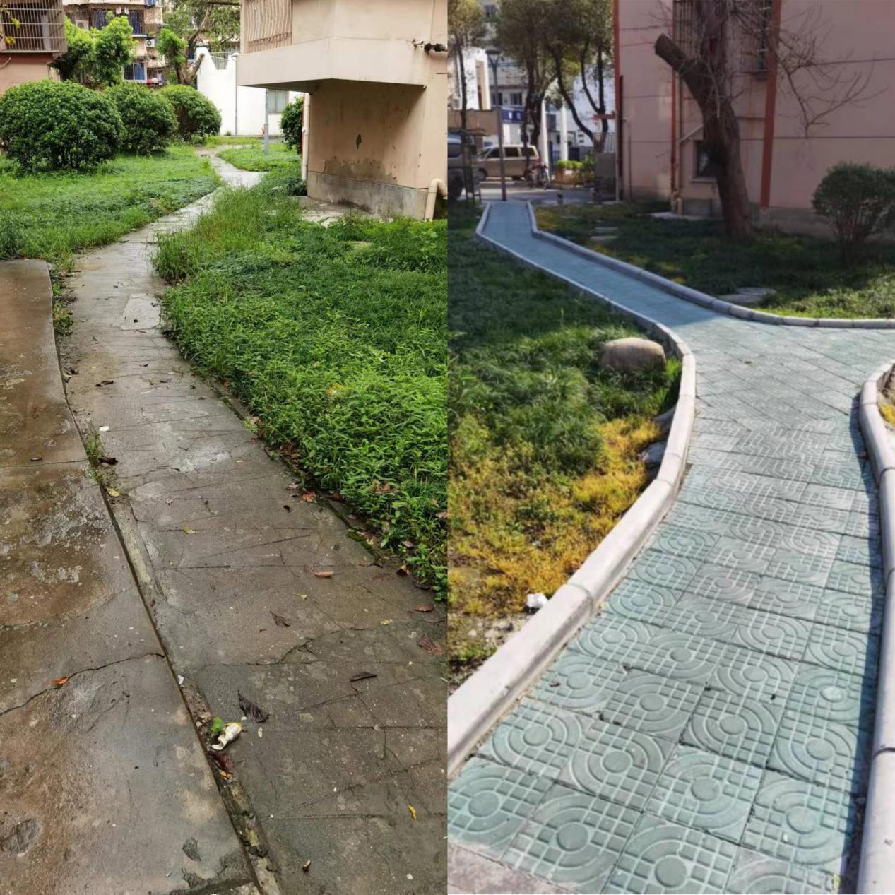 经集思广益、反复协商,由江北区综合行政执法局市政养护中心进行施工,自2020年以来,中心在文教街道片区内已经实施16个“民生小事”专项提升项目,包括在小区内增设止车柱,在破旧楼道安装智能防盗门,对老旧围墙进行修整等等,改善小区环境,提升居民生活品质。本次提升改造是在原人行便道铺装248平方米的40mm厚彩色水泥透水砖,并在两侧安装464米侧石。同时对现有绿化区域进行规划改造,增设健康宣传标识,增加社区休闲锻炼的空间,为居民营造良好的休闲锻炼氛围。