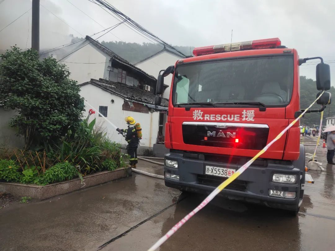 在消防救援队员、村民村干部、属地公安和特警突击队员的共同努力下,大火被迅速扑灭,所幸无人员受伤。