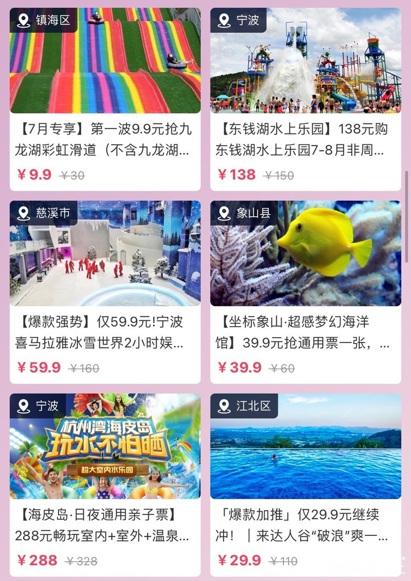 例如,今年6-7月,“蜗牛游”旅游平台上下单量骤增,“截至目前,阿拉的海水上乐园、东钱湖水上乐园、海皮岛水世界,三家景区合计售出16万张门票。”平台负责人告诉记者,6月中旬,阿拉的海水上乐园在该平台开启门票预售,仅12小时,销售量突破4万张,营业额突破320万元。