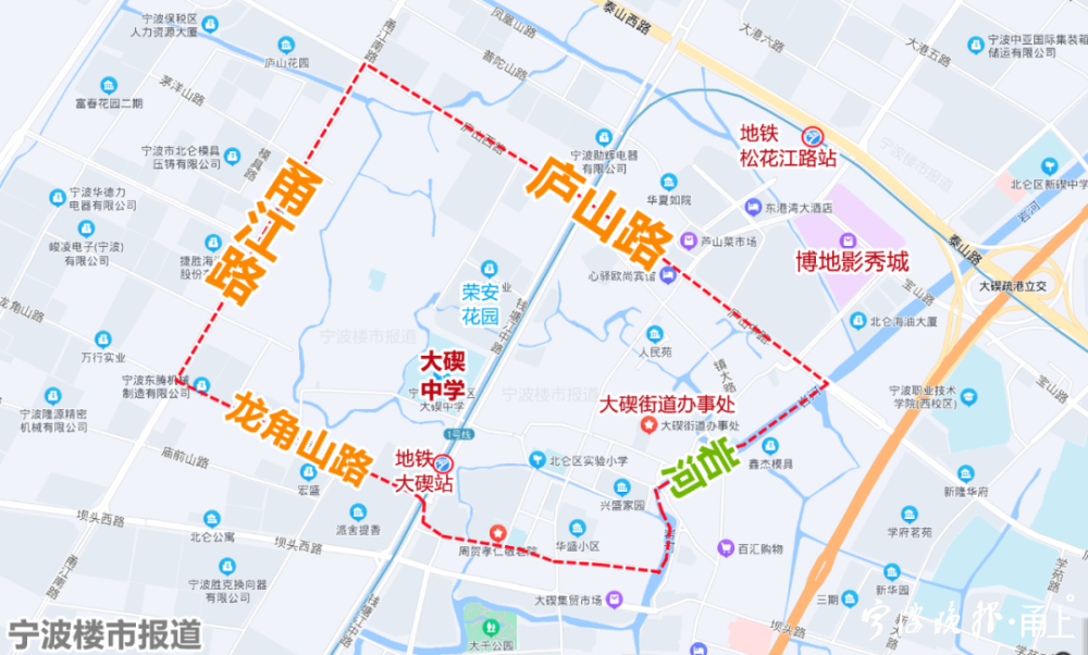 据北仑方面公开信息,庐山路南片区范围东到岩河、西到甬江路、北到庐山路、南到龙角山路,总面积202公顷,是北仑重要的城市更新片区之一。