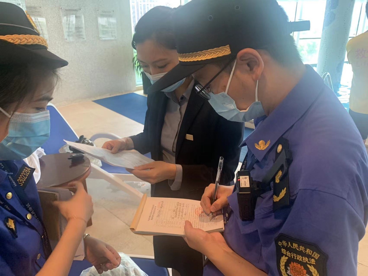 “水面面积在250平方米及以下的游泳池,应至少配备有资质的游泳救生员3人;水面面积在250平方米以上的游泳池,应按泳池面积每增加250平米及以内增加1人的比例,配备救生员。”2022年7月15日下午,鄞州区综合行政执法局专业二中队执法人员对鄞州区首南街道某酒店内设的游泳池进行检查时发现,该酒店泳池救生员数量不足,违反了《浙江省全民健身条例》第三十九条的规定,这也是鄞州区综合行政执法局自体育领域行政处罚事项划转后开出的首张罚单。 当天,鄞州区综合行政执法局执法人员对该酒店泳池的证照情况、设备设施、安全保障、警示标识等情况进行全面检查。据现场查看,该酒店泳池为不规则形状,泳池的水面面积约200平方米左右。经过检查,酒店经营范围包含体育且已办理《高危险性体育项目经营许可证》,并在有效期内;现场有符合数量的救生观察台、出人水扶梯,救生圈、护颈套等救生设备及氧气袋等急救用品;泳池边等醒目位置也张贴了“游泳人员须知”、“现场心肺复苏步骤”、“严禁跳水”等必要的安全警示。但当执法人员核对救生员人数时发现,现场仅有2名救生人员在岗。而该酒店《高危险性体育项目经营许可证》中规定的水上救生员人数为3名,墙上张贴的水上救生员上岗证也为3张。经过比对,现场在场的2名救生员人证相符。在执法队员检查期间,另一名本该在岗的救生员始终没有出现。 《浙江省全民健身条例》第三十九条、中华人民共和国国家标准中“关于体育场所开放条件与技术要求”明确规定:水面面积在250平方米及以下的游泳池,应至少配备有资质的游泳救生员3人;水面面积在250平方米以上的游泳池,应按泳池面积每增加250平米及以内增加1人的比例,配备救生员。 该酒店未配备足够数量救生员的行为违反了《浙江省全民健身条例》第三十九条的规定,根据该条例第四十二条的规定,可对其处一千元以上一万元以下的罚款。执法人员利用PDA移动执法,现场对其作出了罚款1000元整的简易程序行政处罚,并责令其改正违法行为,尽快配齐足够数量的救生员。