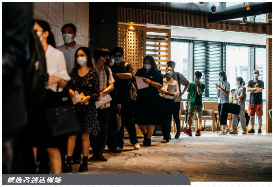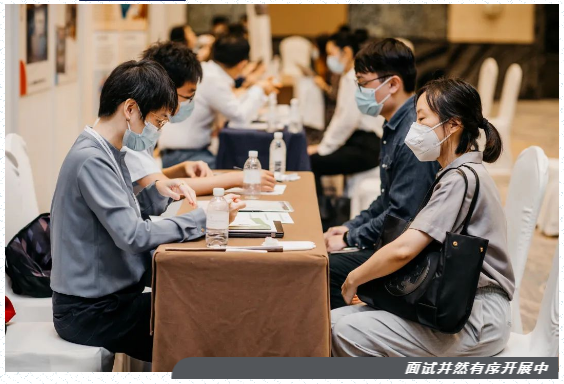 本次招聘会也是提前做好了人员数量的控制工作,候选者都按照预定的时间分批到达招聘会现场,凭48小时核酸阴性证明和扫描场所码进入会场,全程佩戴口罩,保持社交距离。