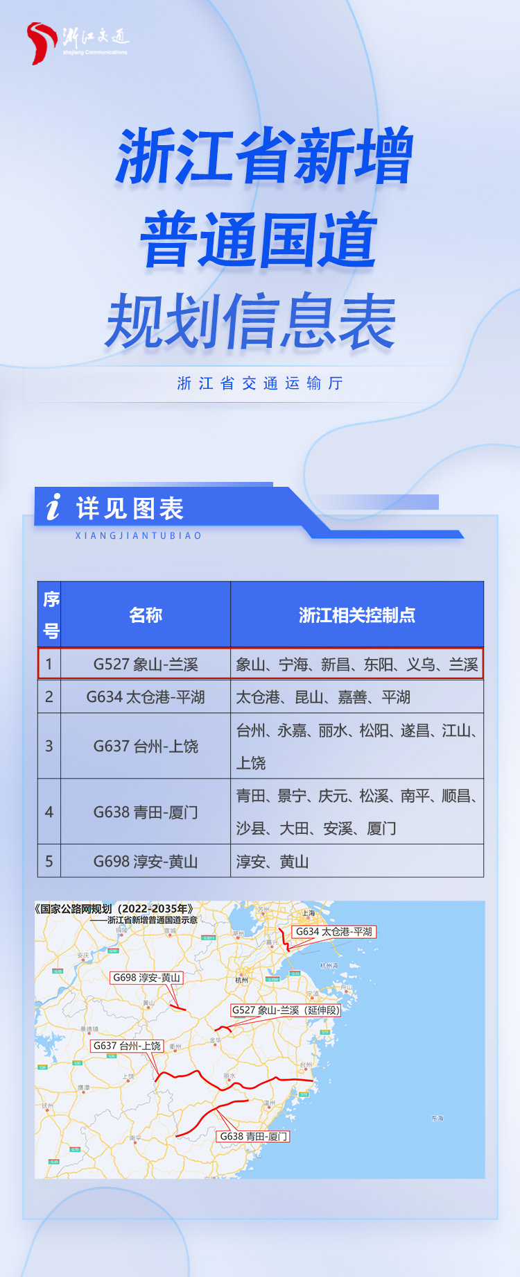 G634太仓港-平湖公路、G637台州-上饶公路、G638青田-厦门公路、G698淳安-黄山公路。