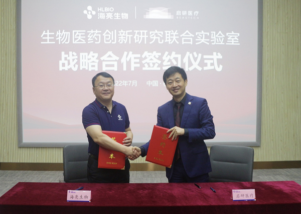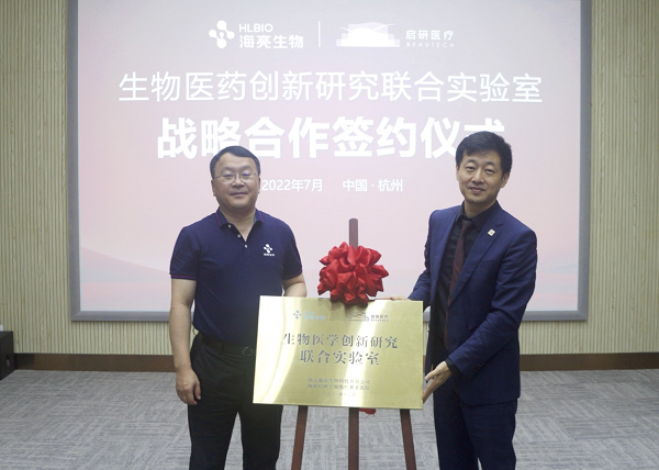 7月21日上午,海亮生物与启研医疗战略合作发布会暨生物医学创新研究联合实验室揭牌仪式在杭州市滨江区隆重举行。海亮集团副总裁、海亮生物总经理詹天浩与启研医疗总经理、执行董事朱一,分别代表双方签署战略合作协议。海亮生物首席科学家姜卫平博士,海亮生物副总经理唐鲁,海亮生物高级顾问李良,启研干细胞抗衰老医院院长黄国军,启研医疗技术总监王磊,启研医疗业务高级经理马昭等出席签约仪式。